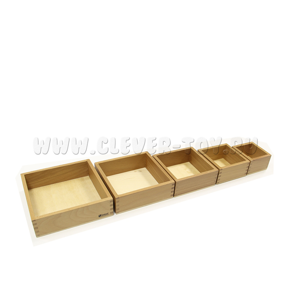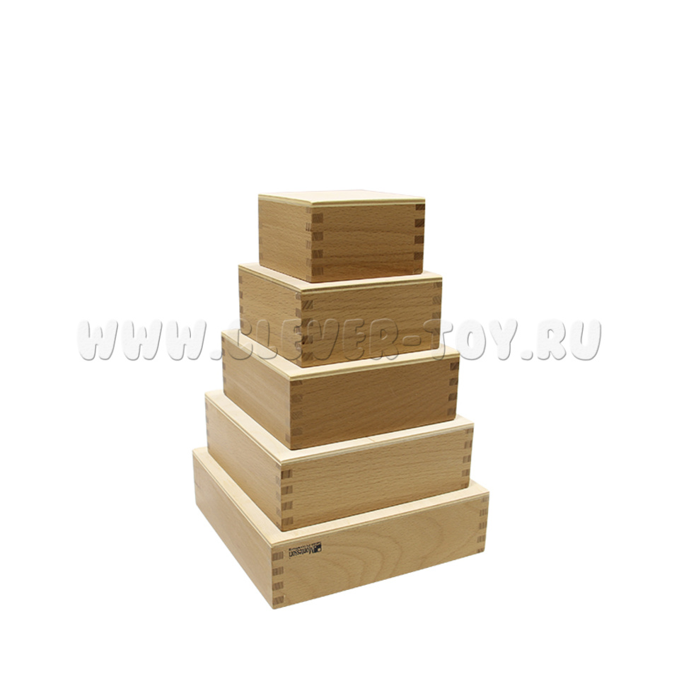 В набор входит 5 деревянных коробочек разного размера. Коробочки выполнены из экологически чистого материала – натурального дерева, хорошо отшлифованы и абсолютно безопасны для детских ручек.