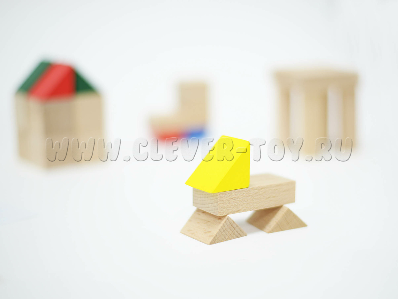 Игровой набор Фребеля «Конструктор деревянный без соединения-1» предназначен для детей от 3-х лет. С этим набором ребенок познакомится с геометрическими фигурами и цветами. Впоследствии пользуясь карточками из набора, ребенок может почувствовать себя строителем и собрать свой замок, а также пользуясь своим воображением, дети смогут придумать и создать все, что им захочется.