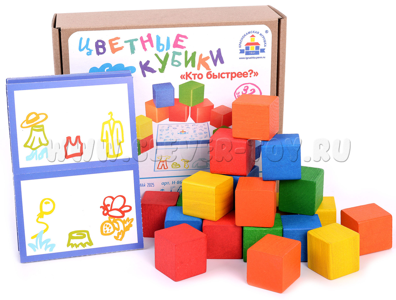 • 20 цветных деревянных кубиков,