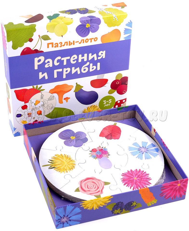 Развивающая интеллектуальная игра для малышей "Растения и грибы" подойдет детям старше 3 лет и поможет им в: