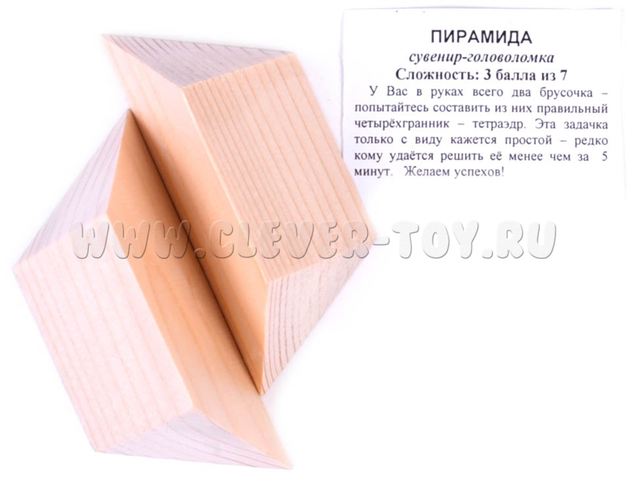 У Вас в руках всего два брусочка – попытайтесь составить из них правильный четырехгранник – тетраэдр. Эта задачка только с виду кажется простой – редко кому удается решить ее менее чем за 5 минут.