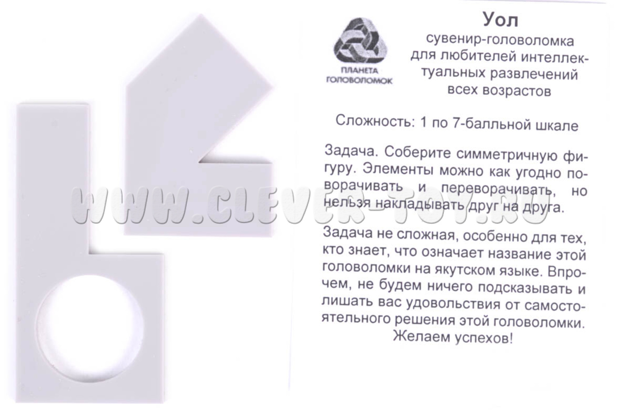 “Уол” - это простая и увлекательная головоломка, которая состоит всего из двух необычных деталей. Вам предстоит найти решение, чтобы сложить симметричную фигуру учитывая круг и острый угол второй детали.