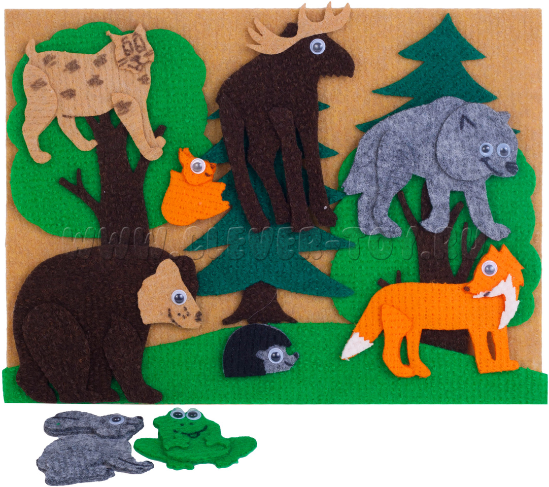 Яркие, прочные, безопасные ковролиновые животные познакомят вашего ребёнка с обитателями лесов.