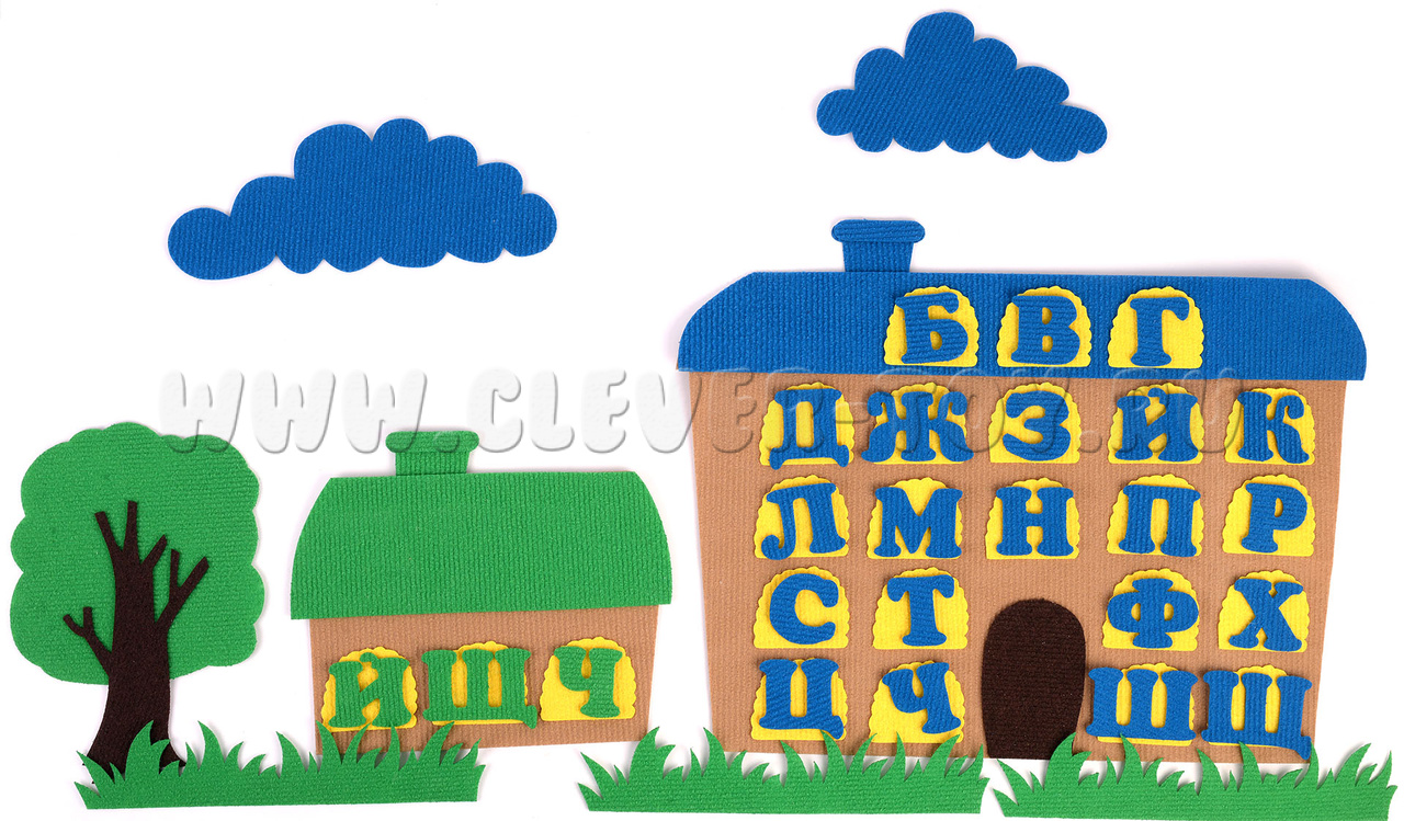 с синей крышей– для согласных букв с 21 окном (размер: 47х36 см),