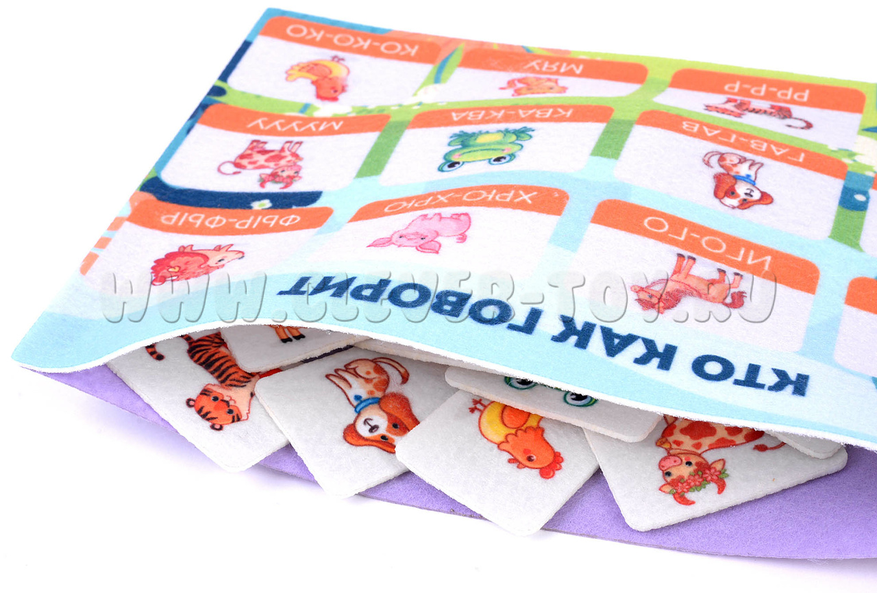 Кто рычит, кто мычит и мяукает? С помощью мягкой аппликации «Кто как говорит» ребенок в игровой форме узнает, какие звуки издают самые разные животные. Регулярно занимаясь с дидактическим пособием, малыш расширит свой кругозор, узнает больше об окружающем мире, а также разовьет свои пальчики и мышление.
