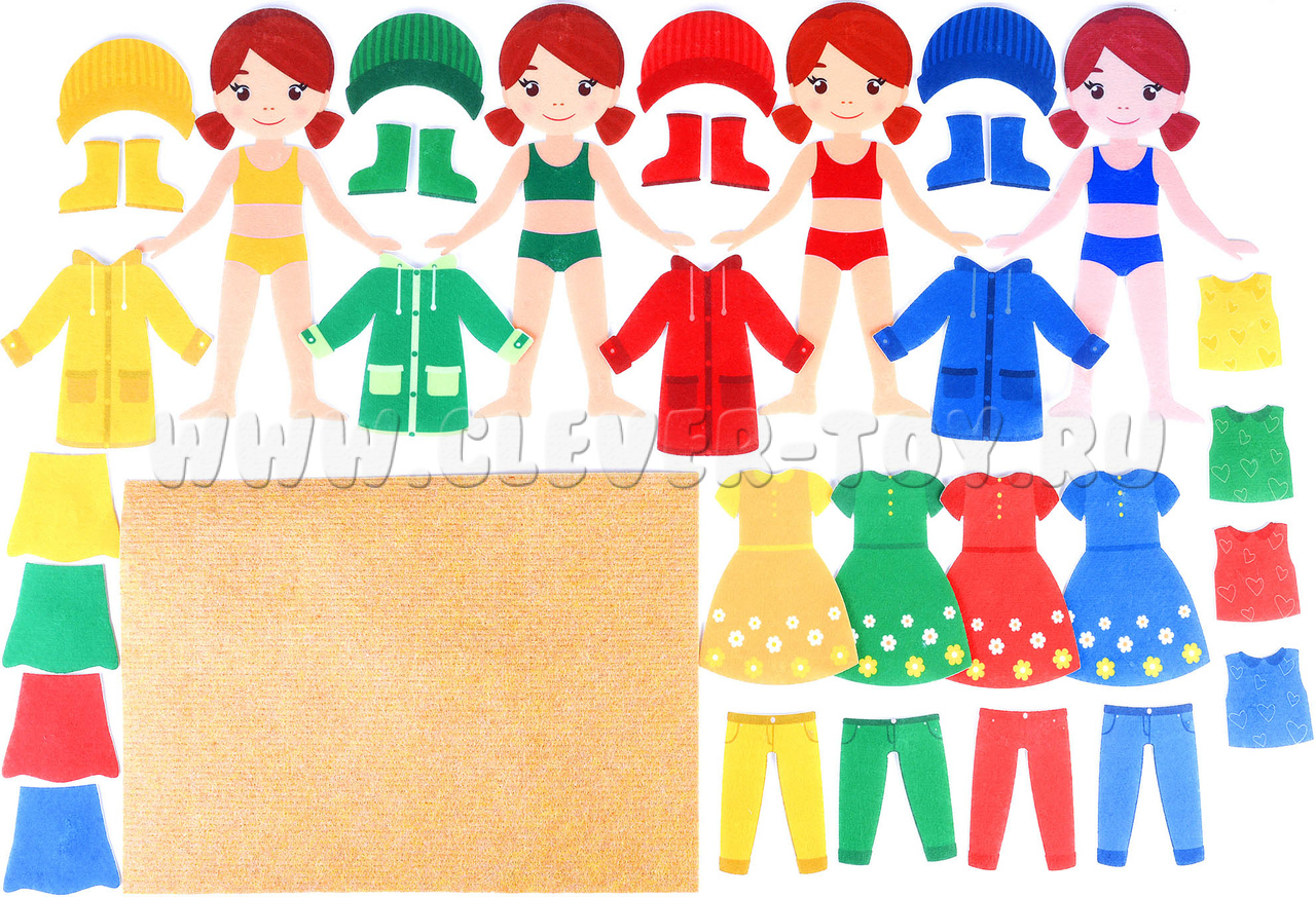 Игровое поле 25*35см, 4 комплекта одежды и 4 девочки высотой 25см.