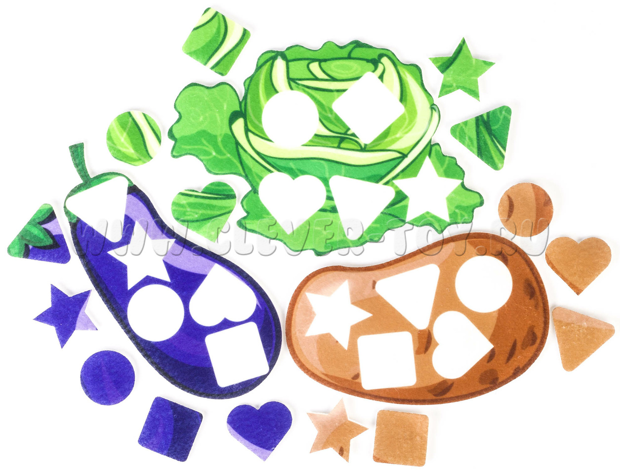 Многоразовая апликация на липучках "Овощной микс сортер" изготовлен из приятного на ощупь фетра- этот материал очень прочный, а края фигурок не осыпаются. Элементы крепятся с помощью прочных липучек и также легко снимаются.