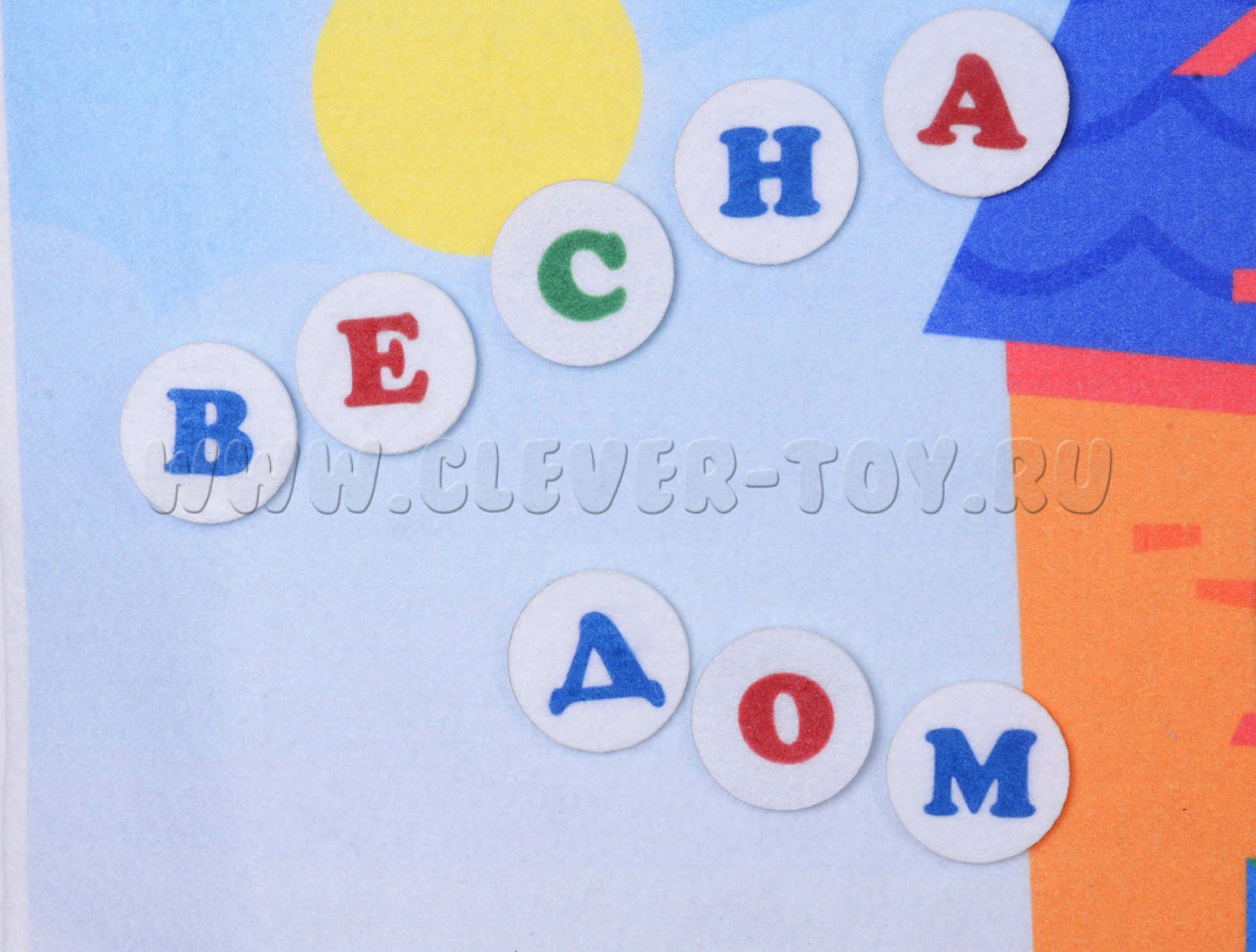 Фетровое панно «Город с буквами» от компании «LIP-LIP» - отлично подходит для наглядного изучения букв и чтению по складам (комбинации из двух букв) и слогам. Благодаря многоразовым липучкам игровые элементы легко крепятся к панно.