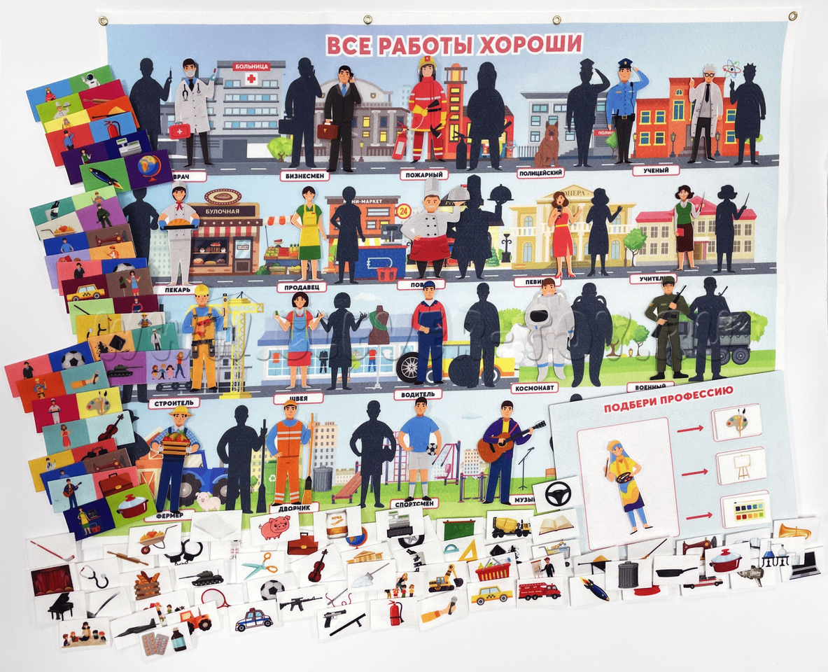 • Панно размером 80 см х 60 см с кармашками и изображениями различных профессий.