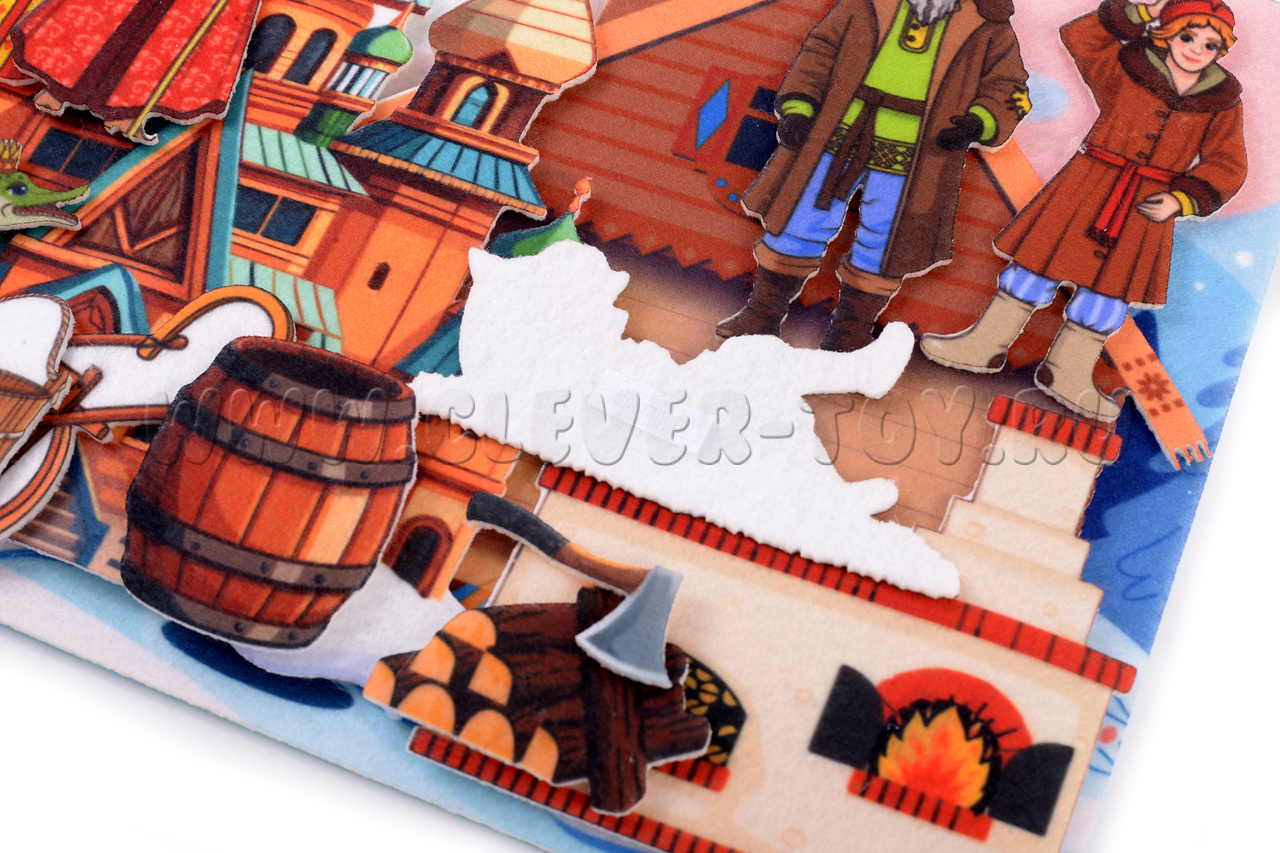 «По щучьему велению» — это игра, которая знакомит детей с русской народной сказкой, развивает их воображение и фантазию. С помощью игры ребёнок также улучшает свою речь.В состав набора входят игровое поле и 18 фигурок.