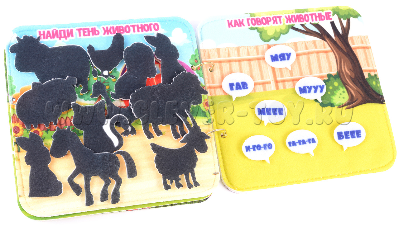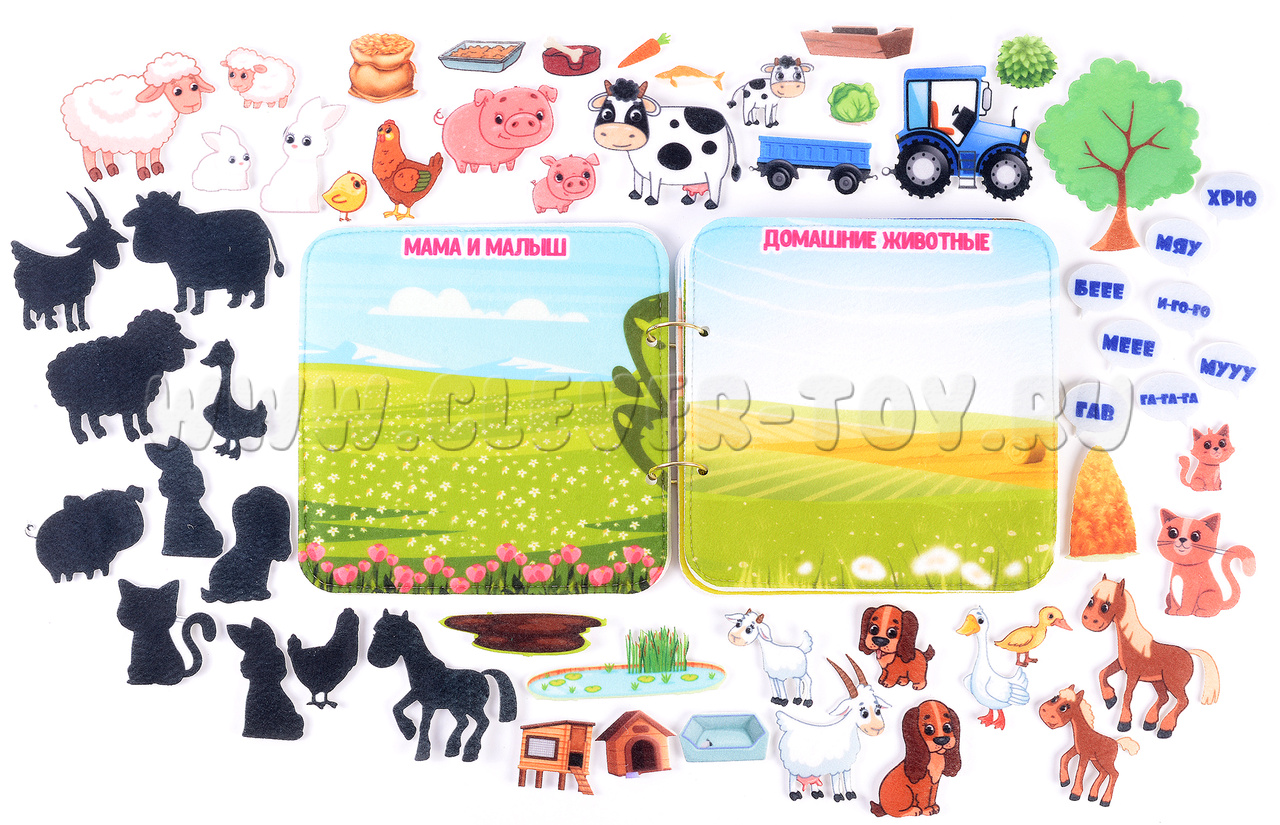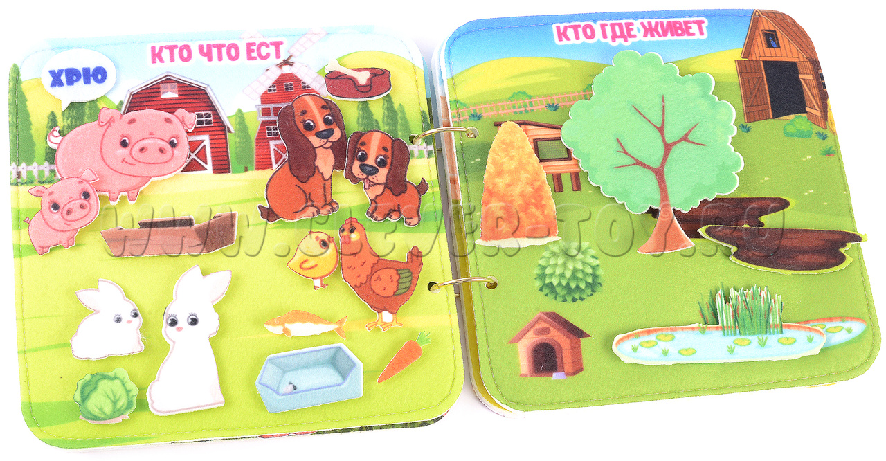 Игра-конструктор для детей старше 3-х лет. Авторская развивающая книга «Домашние животные» из ковролина с фигурами на липучках от российской компании «Lip-Lip».