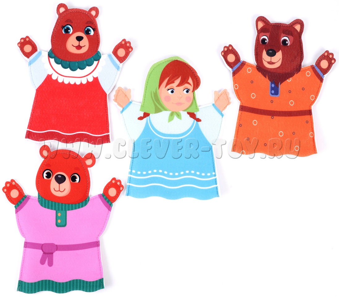 Театр на руку "Три медведя" – сюжетный набор для постановки домашних спектаклей и проведения занимательных дидактических игр. Занятия с набором фигурок помогут малышу развить грамотную устную речь, творческое мышление, память, внимание и артистические способности.