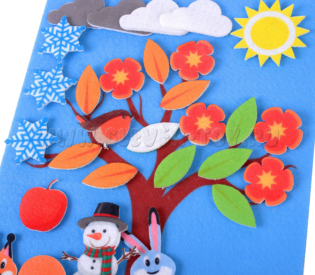 Благодаря дидактическому набору «Времена года» педагоги и родители могут знакомить ребёнка с разными сезонами и их признаками: нарядить дерево листиками и цветочками; узнать, когда бывает снег, когда на деревьях желтеют листочки и т.д. Можно поиграть с малышом в «Путаницу», чтобы он сам смог определить, какие элементы лишние в этом сезоне.