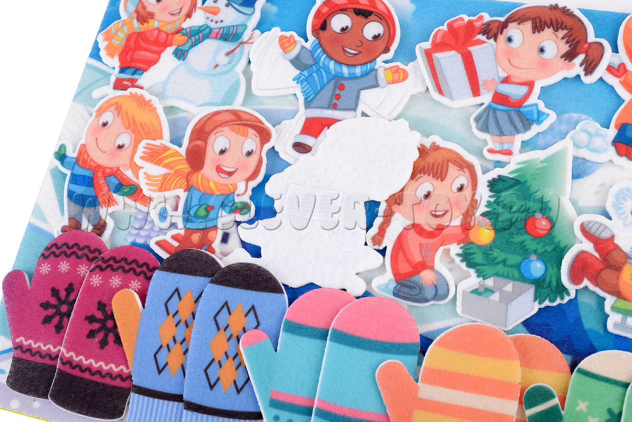 Перемещая по полю персонажей аппликации, малыш, играючи, узнает, как весело проводить время зимой: лепить снеговика, кататься на санках, наряжать елку и т.д. Можно пойти еще дальше: дать героям имена и познакомить их друг с другом.