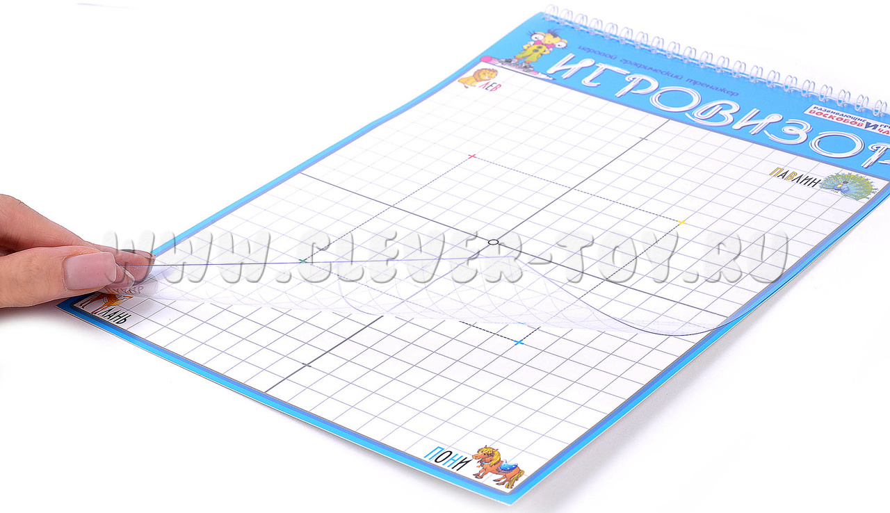 - игровое поле – лист в клетку с центром и 4 зонами (ЛеВ – левый верхний угол, ПаВлин – правый верхний угол, ЛаНь – левый нижний угол и ПоНи – правый нижний угол) с прозрачным экраном для удобного нанесения изображения;