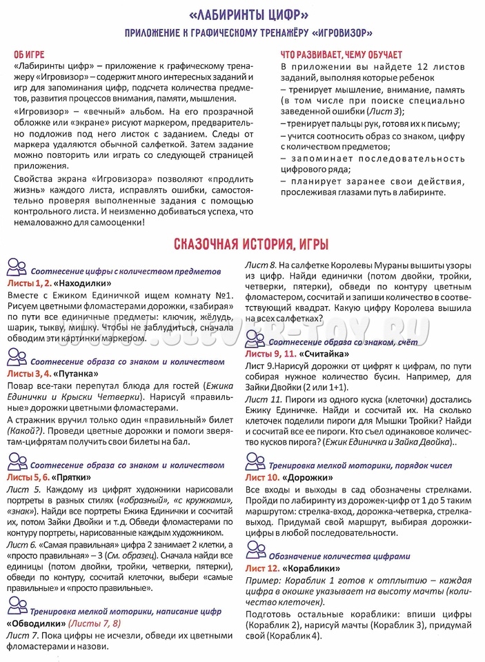 Пособие Лабиринты Цифр. Выпуск 1 (Счет до 5) Приложение к игровизору