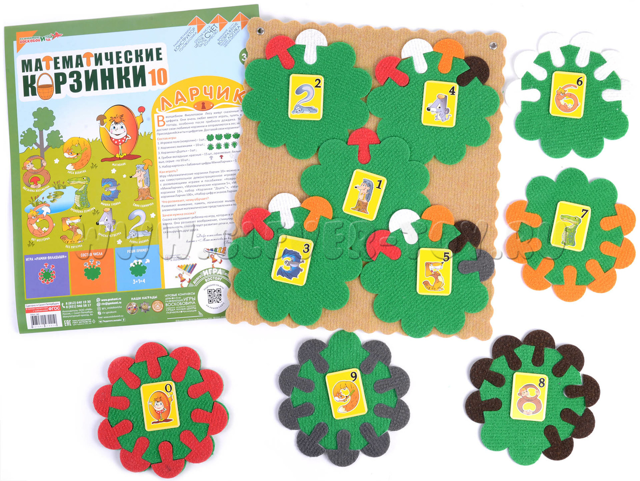 Авторское дидактические пособие для изучения математики из современного безопасного материала ковролина от ведущего российского производителя– фирмы «Развивающие игры Воскобовича».