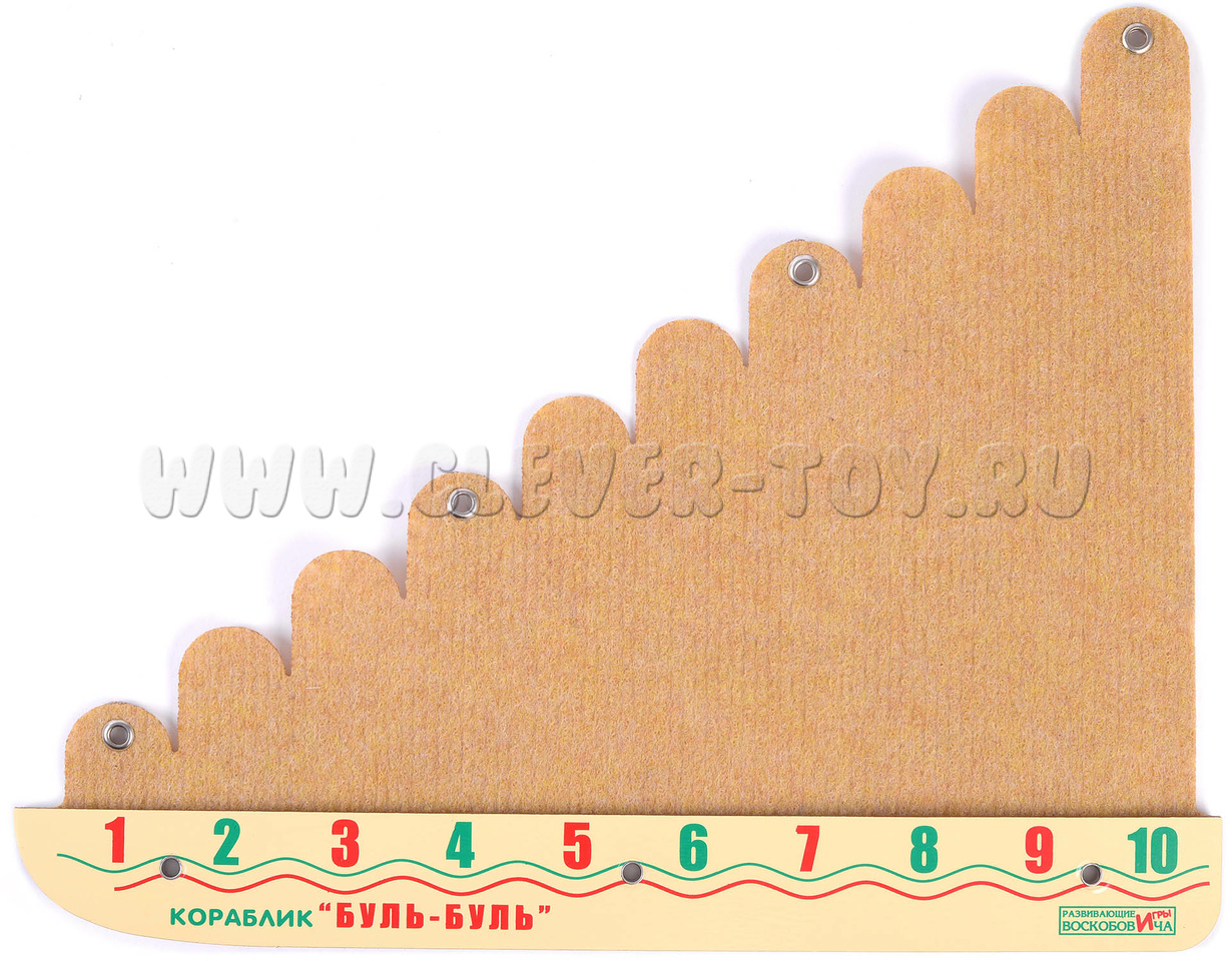 • игровое поле (фанера, ковролин) в виде кораблика с 10 мачтами разной высоты от 3 до 24 см.;