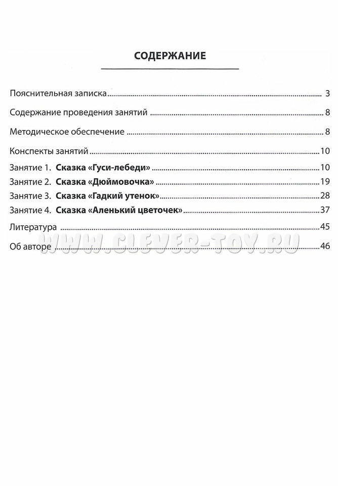 Книга включает в себя методические рекомендации и конспект четырех занятий, каждое из которых - отдельная сказка ("Гуси-лебеди", "Дюймовочка", "Гадкий утёнок", "Аленький цветочек"). Материал разработан в соответствии с требованиями ФГОС.