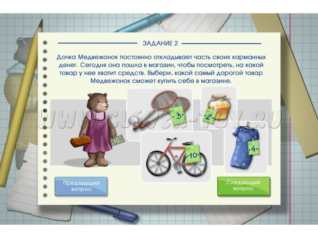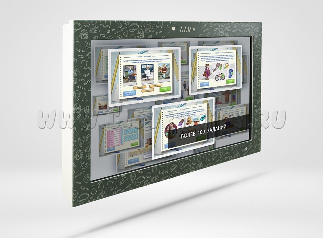 Это методический интерактивный комплекс, включающий многофункциональный сенсорный компьютер, экран с диагональю 55″, а также новейшее программное обеспечение из более чем 100 аналитических и творческих задач на тему финансовой грамотности, разделенных на 4 блока: