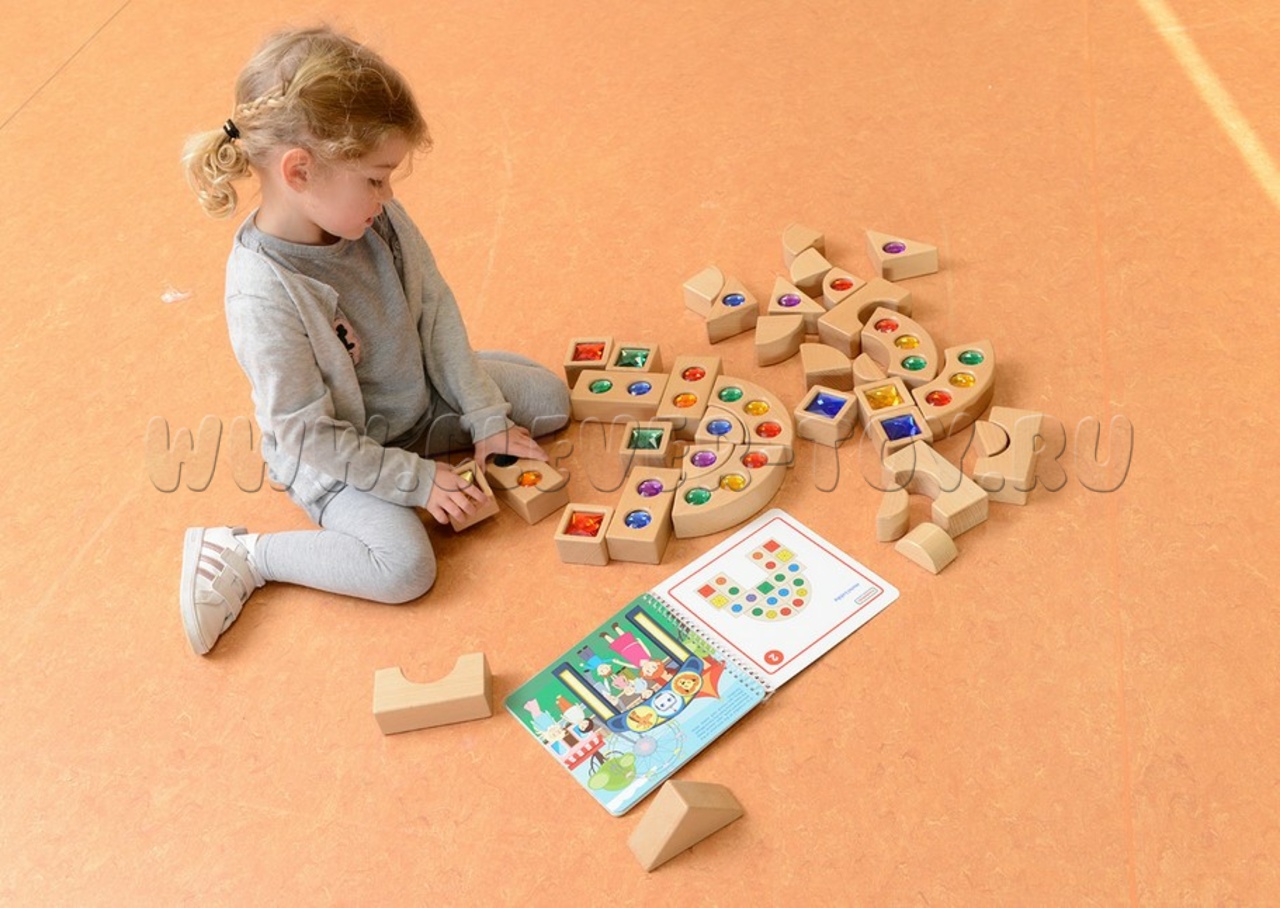 Дети знакомятся с формами и цветами, учатся считать, сравнивать, строить узоры и конструкции по заданиям или придумывают свои. Блоки подходят и для сюжетно-ролевых игр. Они крупные, удобные для детских рук.