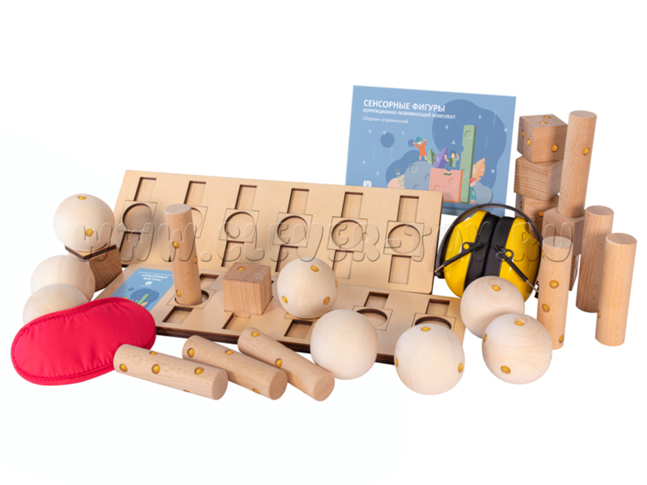 Коррекционно-развивающий комплект "Сенсорные фигуры" предполагает проведение упражнений, как при полном сенсорном контроле, так и при условно-изолированном тактильном канале. В этом случае, когнитивная нагрузка создаёт условия для так называемых осмысленных тактильных упражнений.