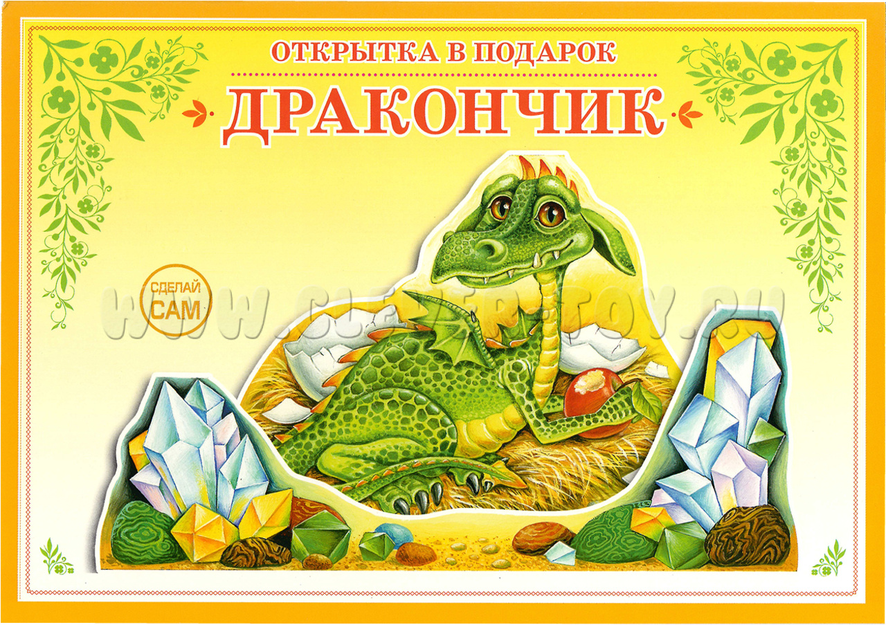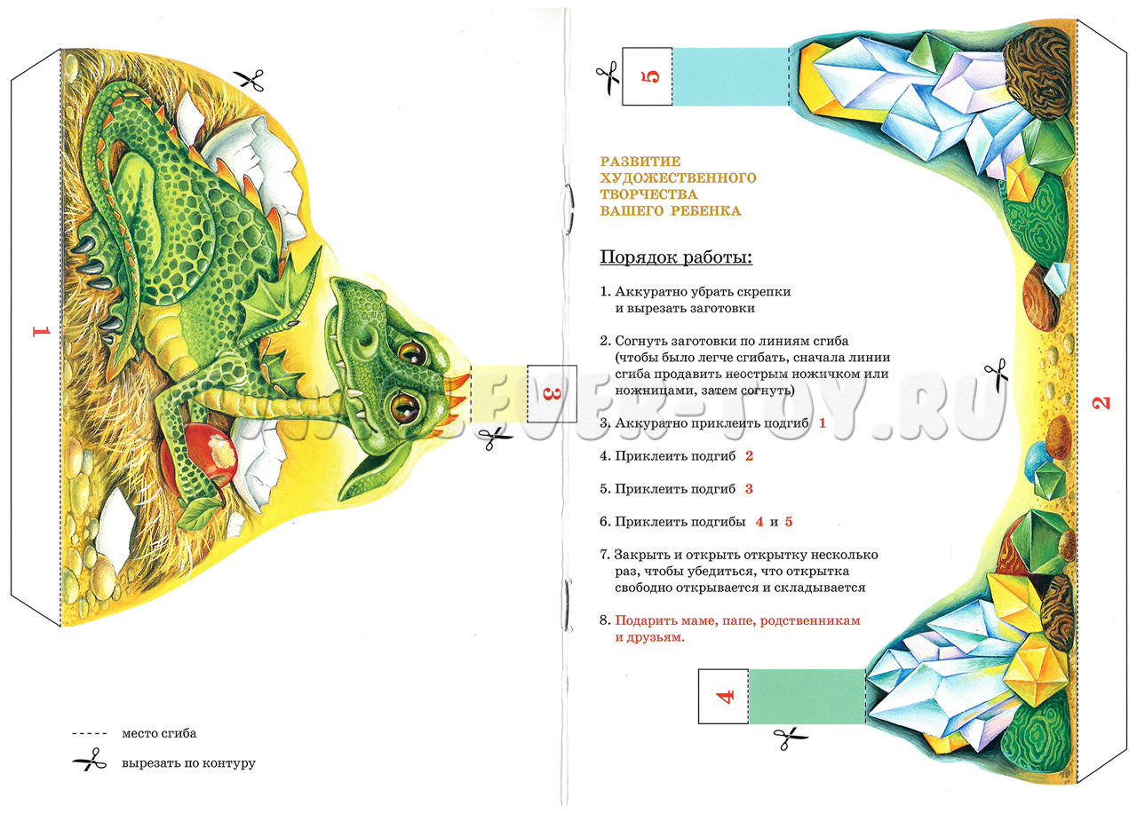 3D объёмная открытка-книжка для детского творчества "Дракончик".