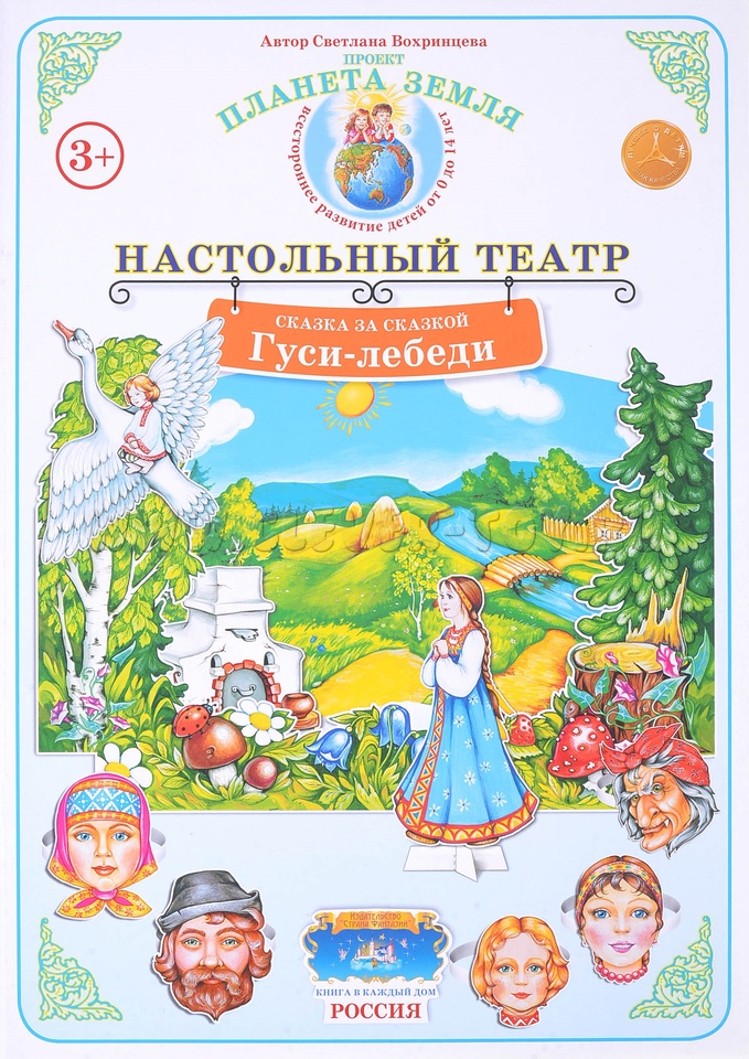 Настольный театр "Гуси-лебеди" представляет собой объемных персонажей в декорациях. Ребенок сможет сам построить сказку по своим мотивам, а так же сыграть по плану который идёт на обороте настольного театра.