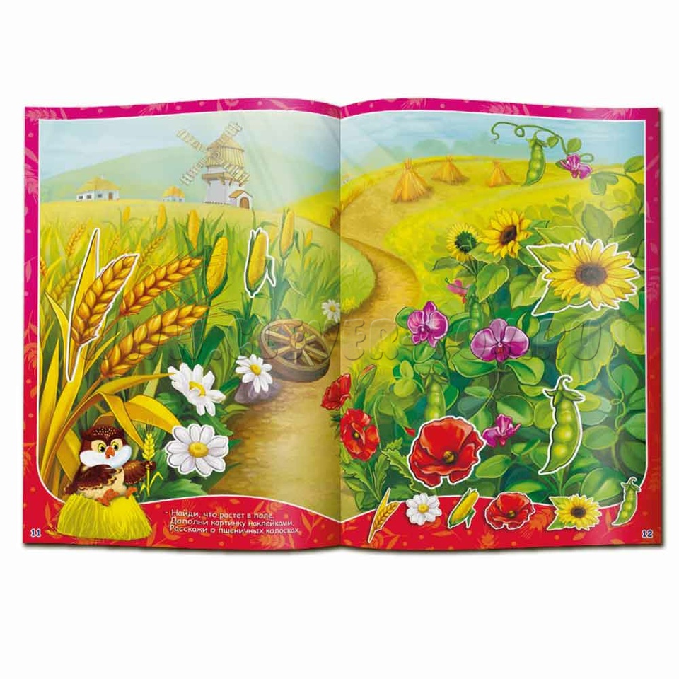 Книжка с наклейками. Серия Твой удивительный мир. Что где растет. 21х29. 12 стр.