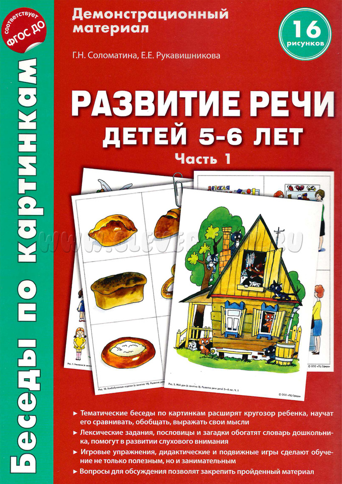 Тематические беседы по картинкам расширят кругозор ребенка, научат его сравнивать, обобщать, выражать свои мысли. Лексические задания, пословицы и загадки обогатят словарь дошкольника, помогут в развитии слухового внимания. Игровые упражнения, дидактические и подвижные игры сделают обучение не только полезным, но и занимательным.