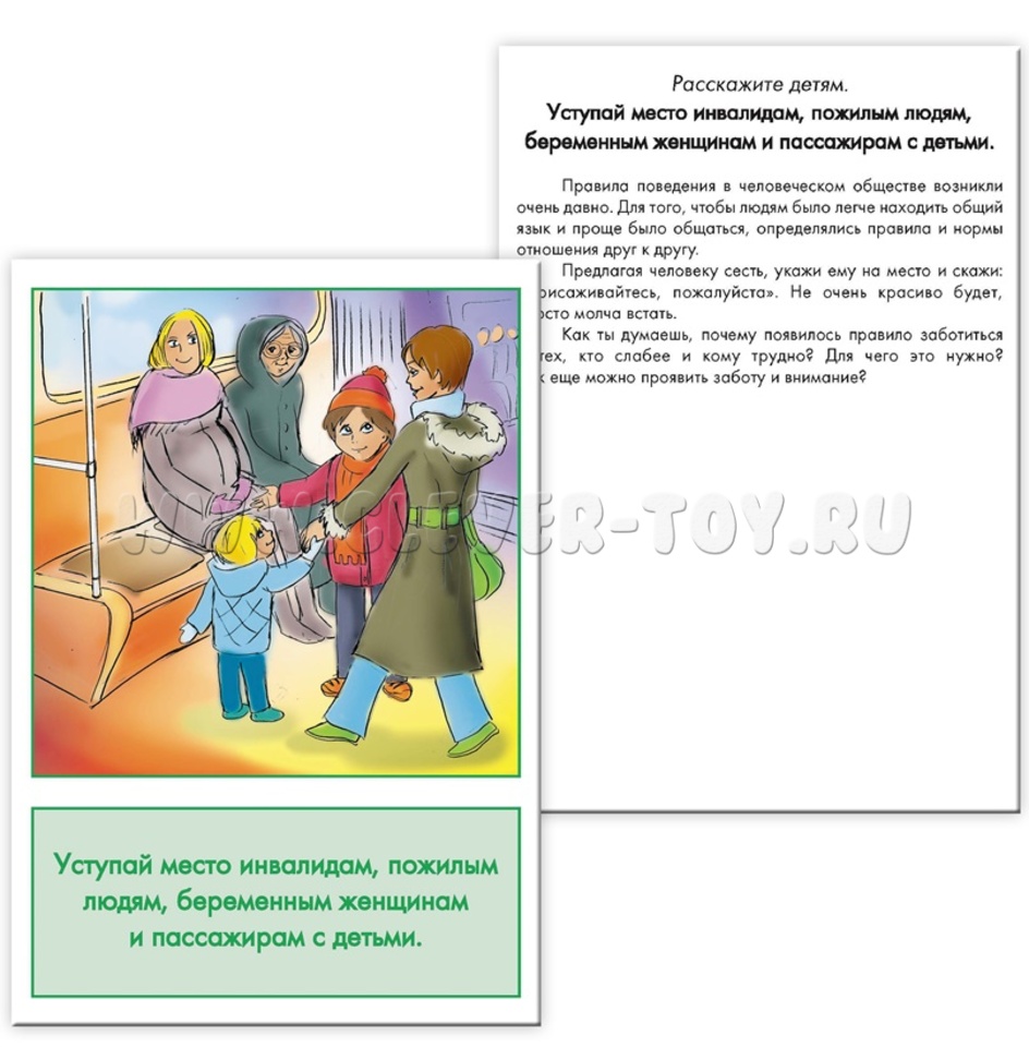 В ходе работы с материалами педагогу или родителю следует ориентироваться на цвет (красный, зеленый) карточки и задавать ребенку наводящие вопросы, уточнять, что сам малыш думает о той или иной ситуации, попадал ли он в нее, становился ли свидетелем. Важно акцентировать внимание ребенка на взаимосвязи между соблюдением правил поведения и доброжелательным отношением окружающих.