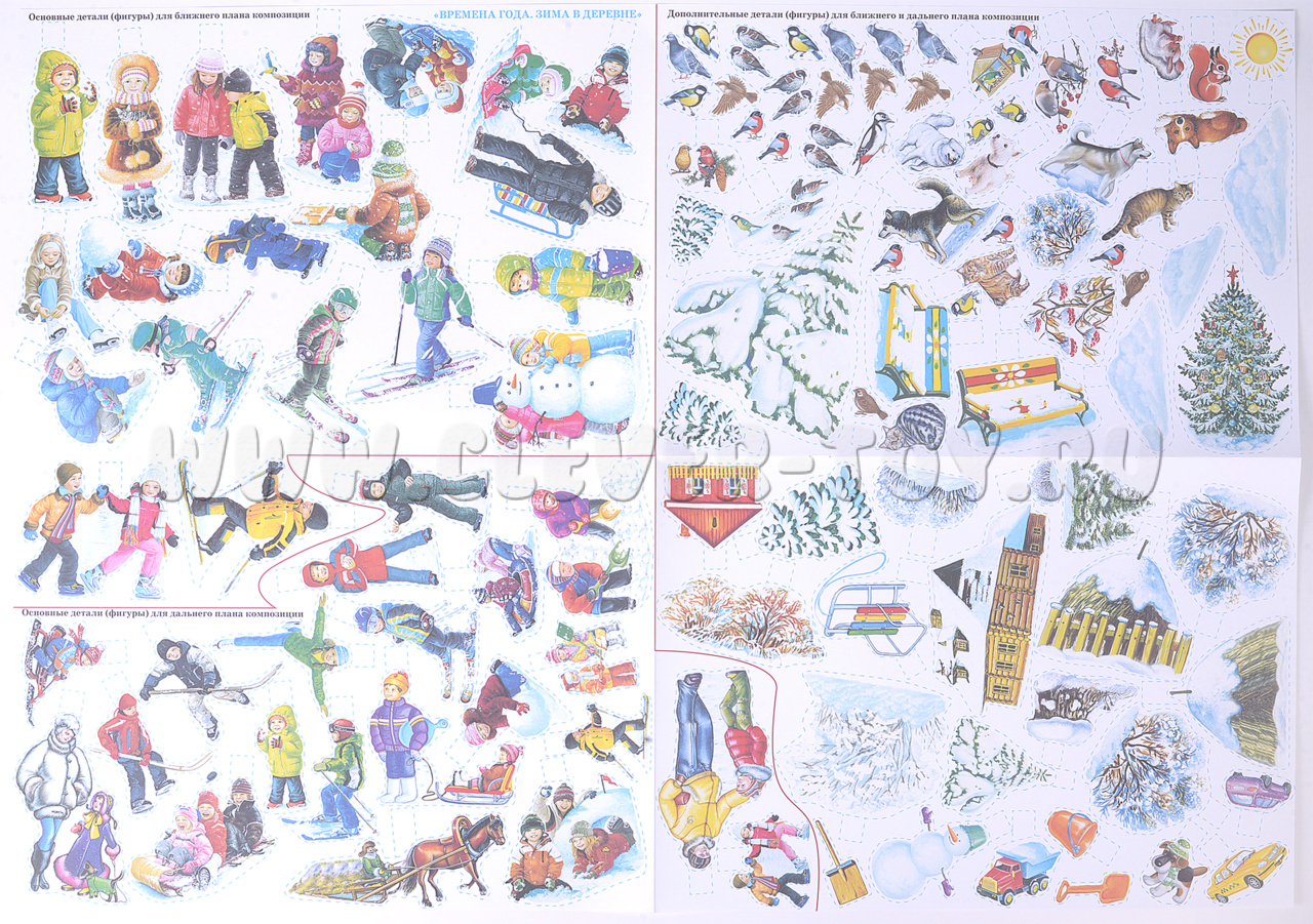 • плакат (А1) с изображением основных и дополнительных фигурок (100-150 штук) для вырезания и наклеивания на сюжетную картину;