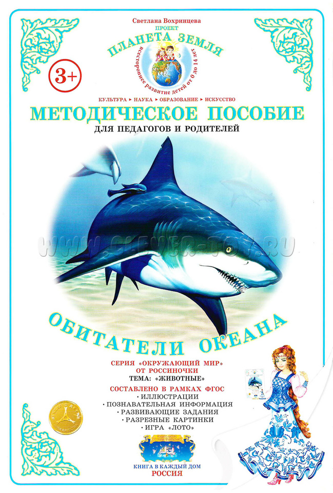 Методическое пособие "Обитатели океана" служит помощником для педогогов и родителей. С помощью данного пособия можно проводить развивающие игры. Подходит для детей младшего возраста и ребятишек начальной школы. Методическое пособие включает в себя: яркие фото карточки, познавательную информацию, конспекты развивающих занятий, развивающие занятия.