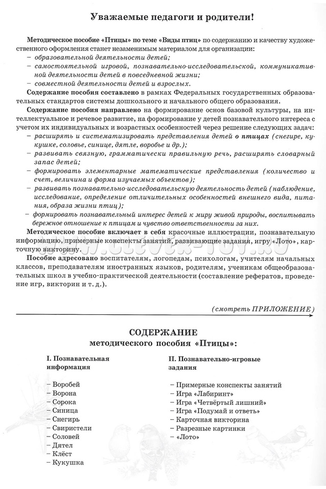 Методическое пособие "Птицы" (по теме "Виды птиц") адресовано педагогам ДОО, воспитателям, специалистам-логопедам, психологам, учителям начальных классов, родителям и подойдет для организации образовательной, познавательной, исследовательской деятельности детей младшего школьного возраста и старше. Оно нацелено на:
