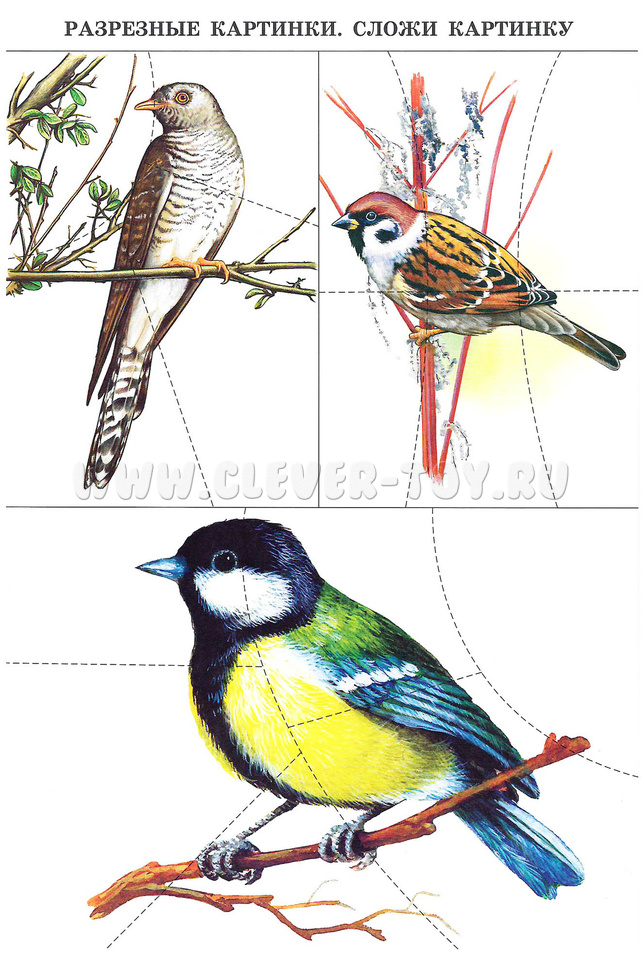 • 10 разрезных картинок на 4 листах А4 для игры "сложи картинку";
