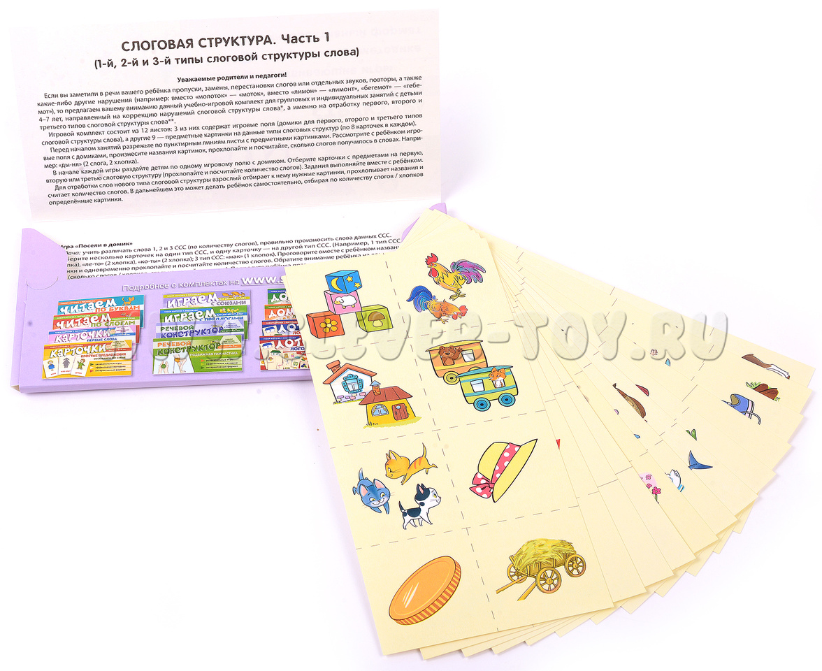 Набор карточек с рисунками. Слоговая структура. Часть 1
