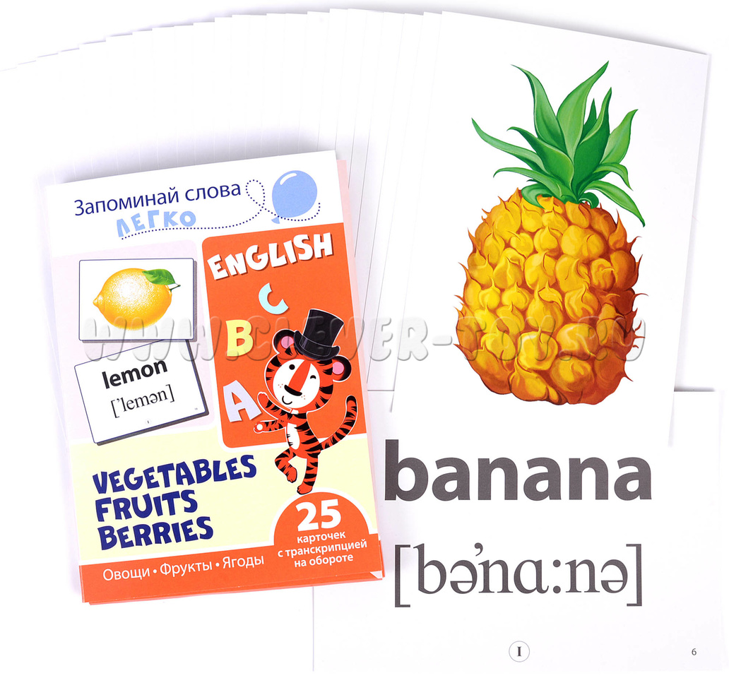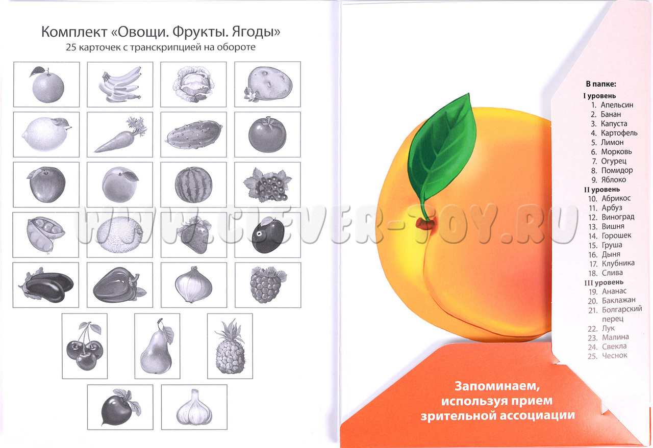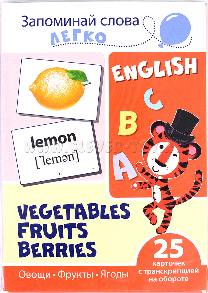 Запоминай слова легко. Овощи, фрукты, ягоды. 25 карточек с транскрипцией на обороте (учебно-методическое пособие с комплектом демонстрационного материала для изучения иностранного языка).