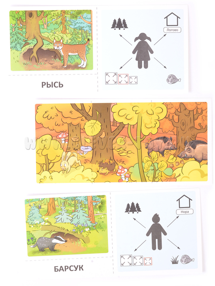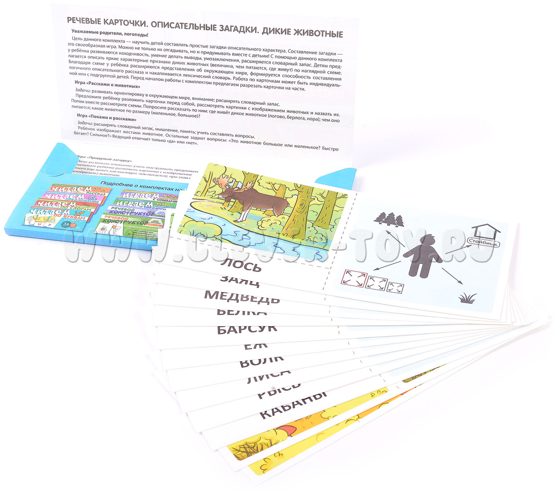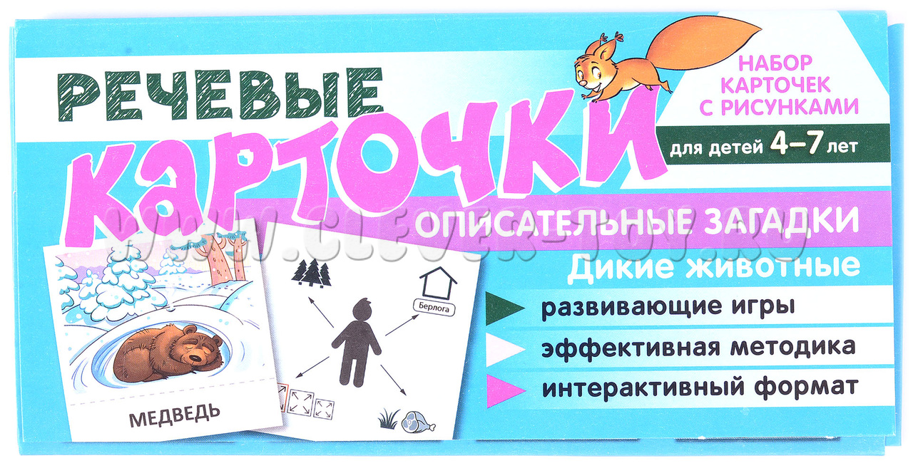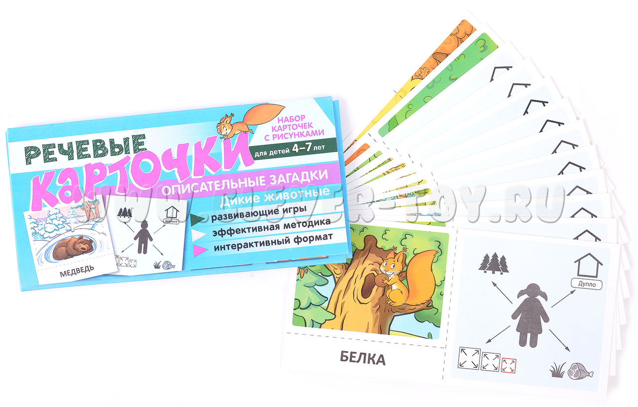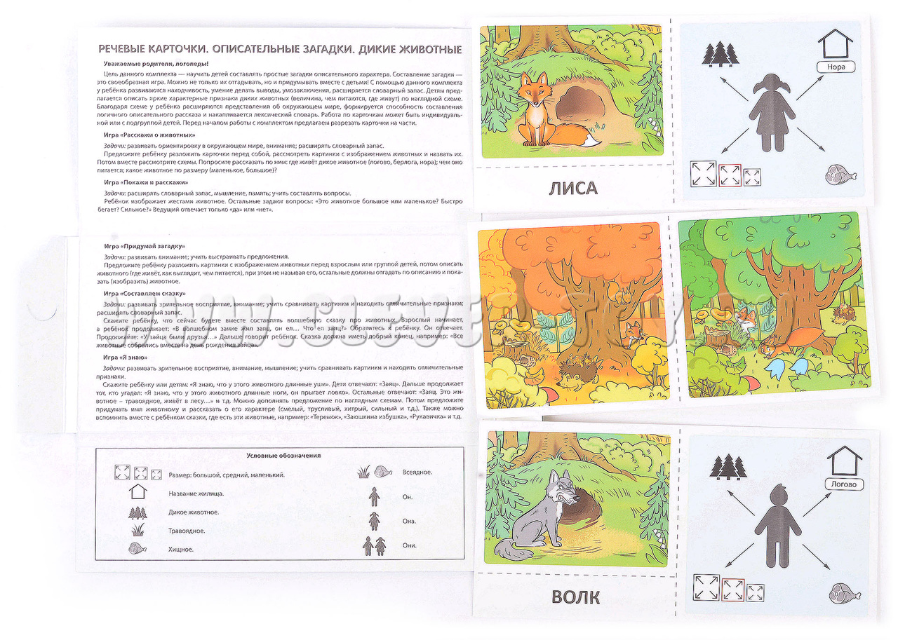 Набор карточек с рисунками. Речевые карточки. Описательные загадки. Дикие животные