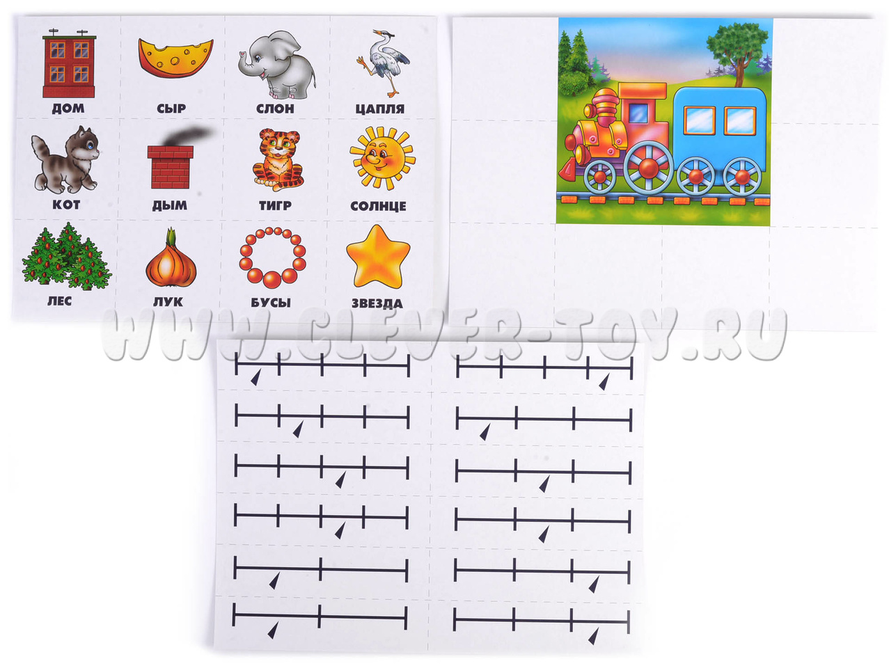 - Раскладываем карточки со словами на больших картах по вагончикам (например, если вагончик с 3 окошками - слова из 3 слогов).