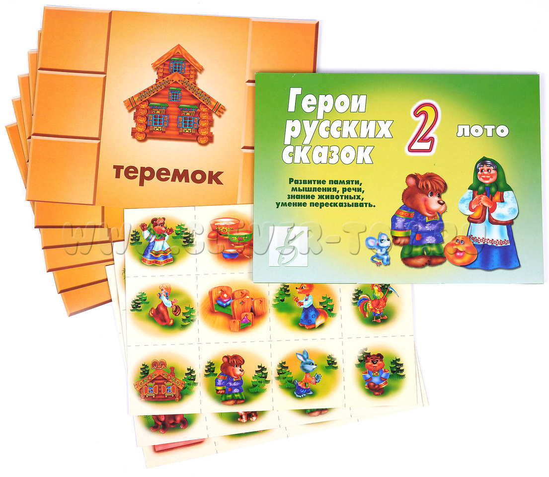 "Герои русских сказок 2" – карточная игра-лото, нацеленная на развитие навыков у детей от 3 до 6 лет.