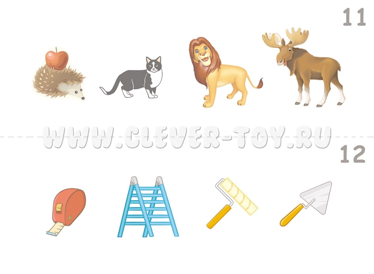 В наборе 12 карт формата А4 и удобная папка для хранения. На каждом листе расположены 2 последовательности слов, в каждой из которых одно слово будет лишним. Задача ребенка – найти это слово. Предложите малышу проговорить все слова, которые он видит на картинке, и определить количество слогов в каждом слове (в случае затруднений можно использовать полисенсорный подход и сопровождать процесс подсчета слогов хлопками, шагами, стуком и др.), а затем исключить лишнее слово, слогов в котором больше или меньше по сравнению с остальными.