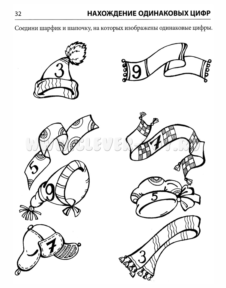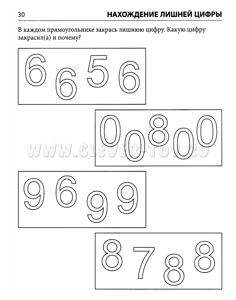 - 1)на нахождение: заданной цифры по образцу; цифры по словесной инструкции; лишней цифры; одинаковых цифр.