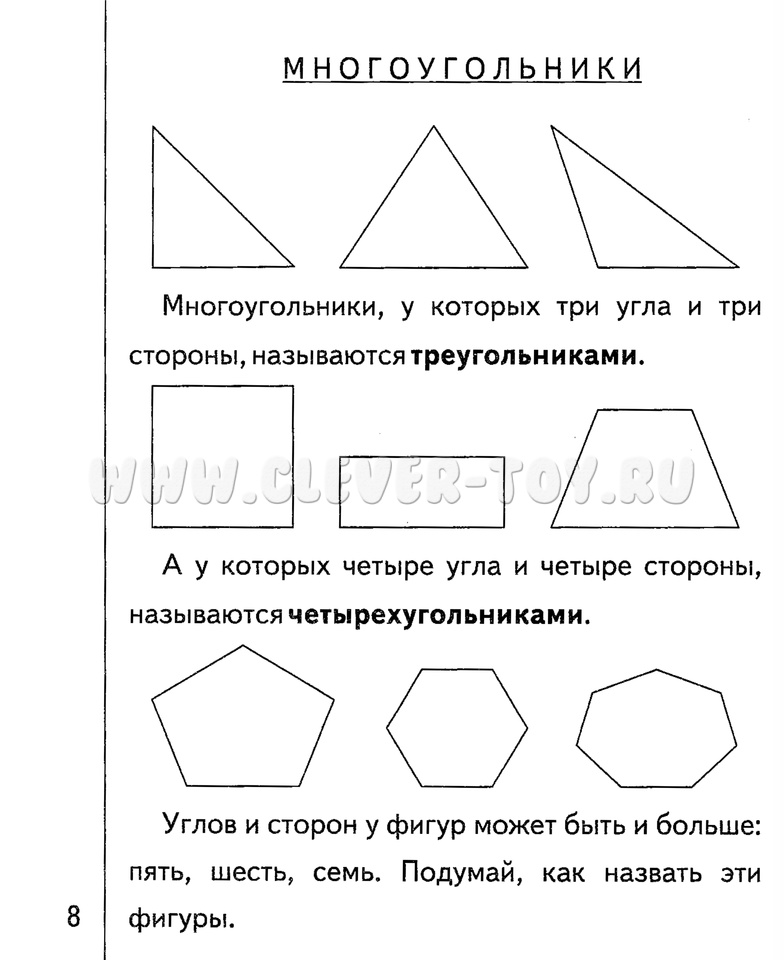 Занимаясь по тетради, дети освоят такие понятия, как геометрическая фигура, геометрическое тело, многоугольник, круг, овал, квадрат, треугольник и т.д.