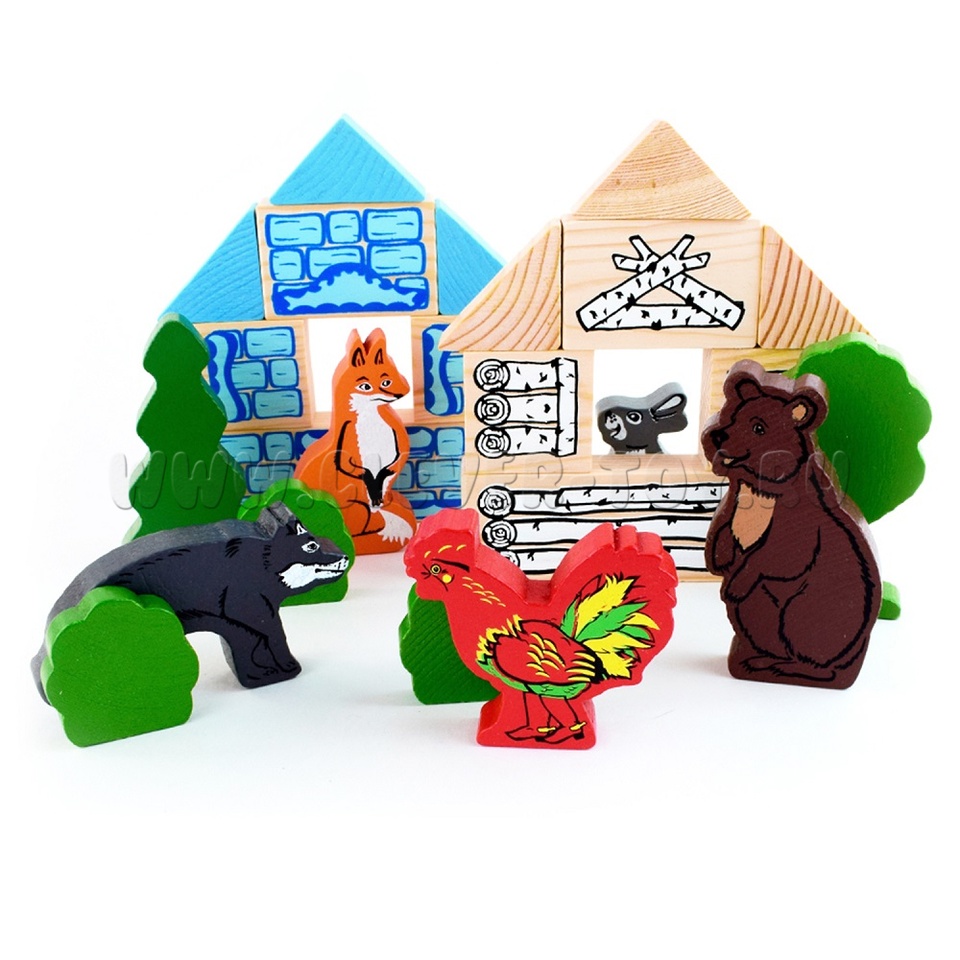 Размер фигурок от 3,5х6х1,5 (зайка) до 5х9х1,5 см (волк). Такой набор можно использовать как в качестве конструктора, так и для ролевых игр.