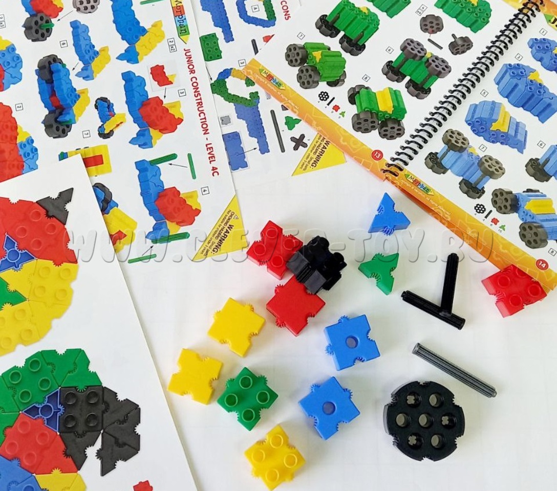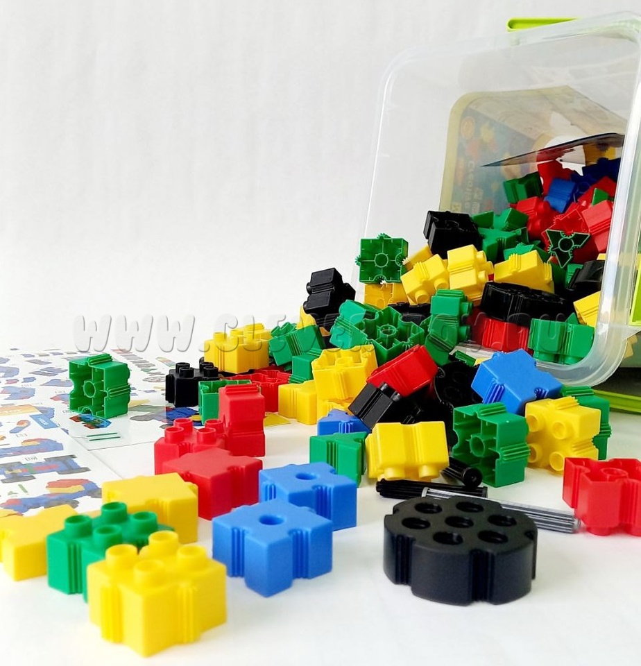 Комплектация: 300 пластмассовых деталей: квадраты, треугольники, соединительные и направляющие элементы.