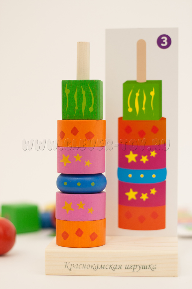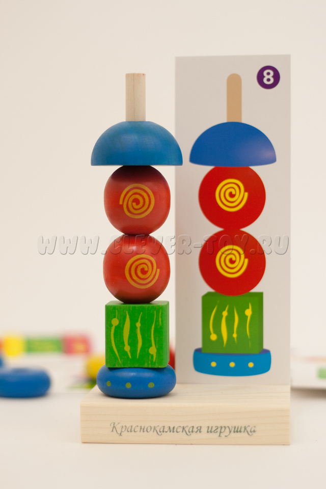Наша пирамидка понравится вашему малышу своим необычным дизайном и яркими цветами, научит его выполнять задания по образцу и различать цвета и формы!