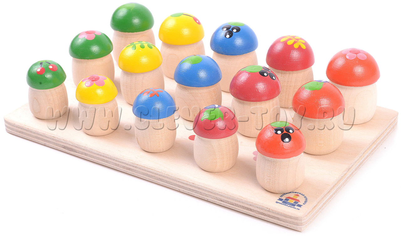 Простая и очень увлекательная игра! С помощью нашего красочного грибного набора Ваш ребенок быстро освоит счет до 15, запомнит основные цвета, научится группировать предметы по величине, а также познакомится со значением слов, используемых в повседневной в жизни, например, "такой же", "разные", "одинаковые".