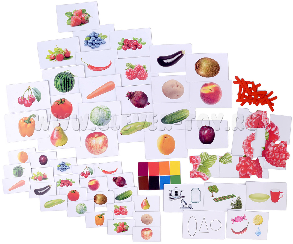 - 23 карточки с плодами (9 см х 5 см): раздаточный материал;