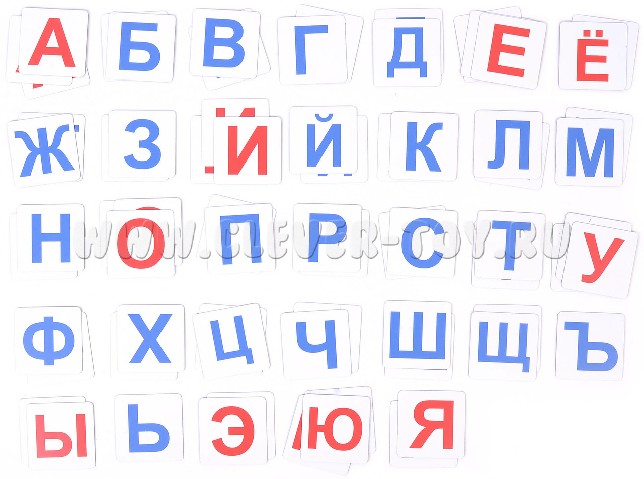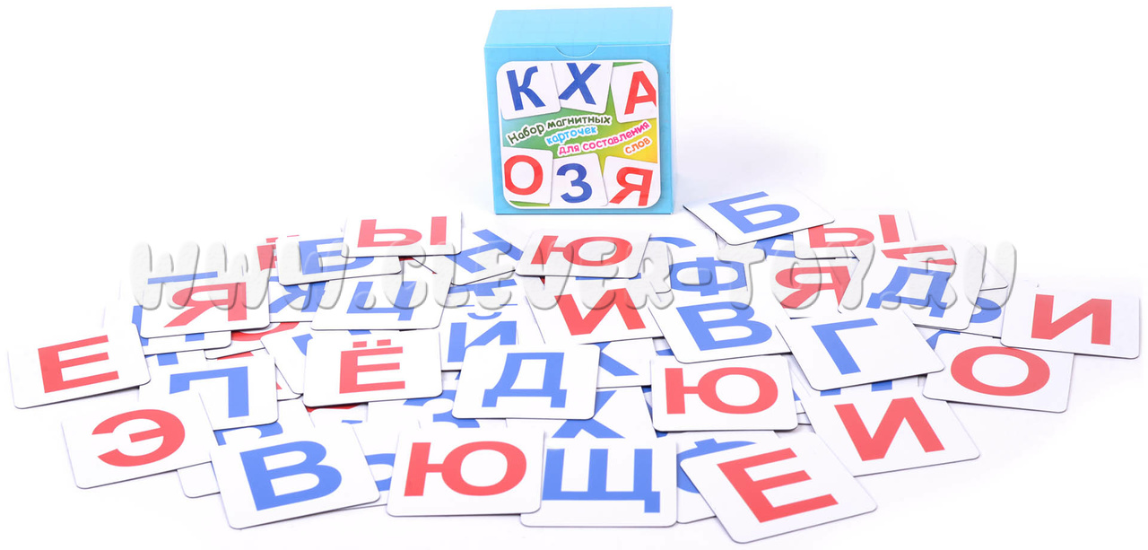 Гласные буквы обозначены красным, согласные - синим или черным: выбирайте, что подходит вам больше. Всего в коробке 70 магнитных карточек с буквами, размер каждой карточки ­– 5*5 сантиметров.