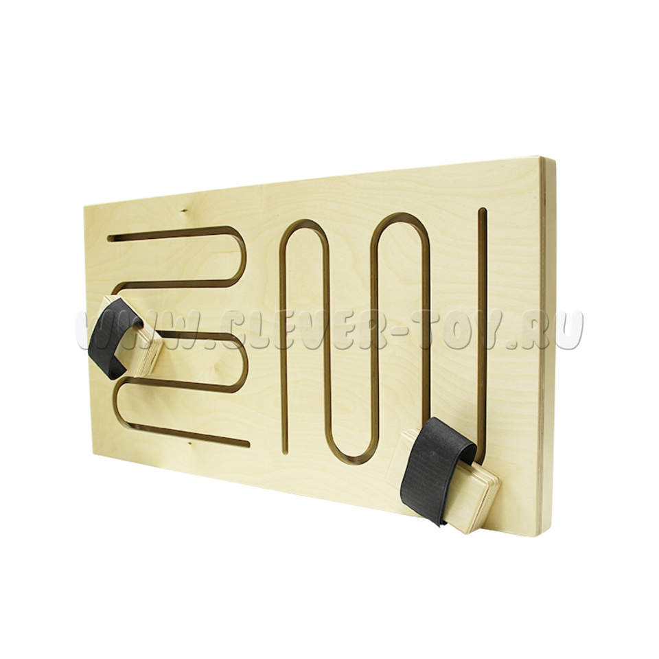 Лабиринт предназначен для развития двигательных навыков. Панель может устанавливаться на столе или крепиться к стене на удобной высоте. Крепления одеваются на руки или на ноги.